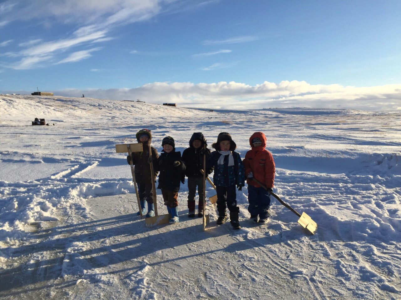В ноябре, когда землю заносит снегом, люди пересаживаются на основной в этих местах транспорт, снегоходы. По зимнику можно доехать до ближайшего села Казачьего, до него 170 километров по прямой. Весь путь занимает около девяти часов. Это обычный для местных способ передвижения.