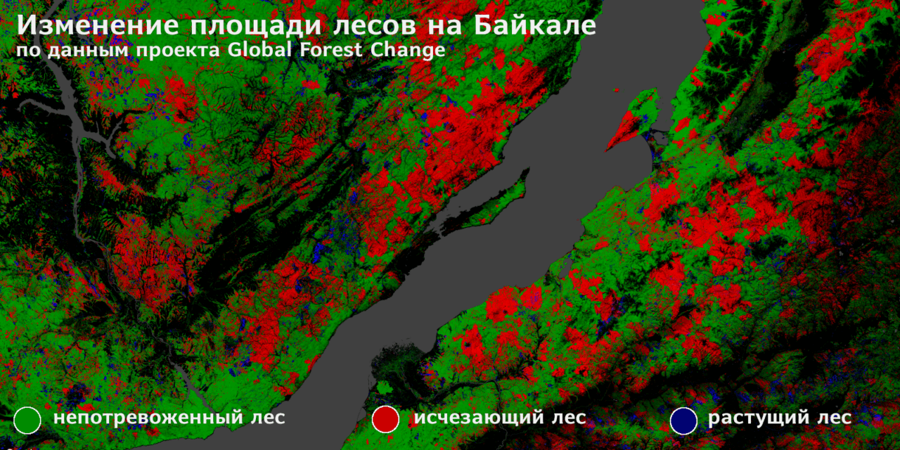 В Иркутской области леса сократились на 0,8% или 5 000 км² — это в два раза больше площади Москвы. Пожары стал причиной гибели 82% исчезнувших лесов, вырубки — 18%. Больше всех пострадали Катангский, Усть-Илимский, Киренский, Усть-Кутский и Качугский районы — в сумме они дали половину всех потерь области.