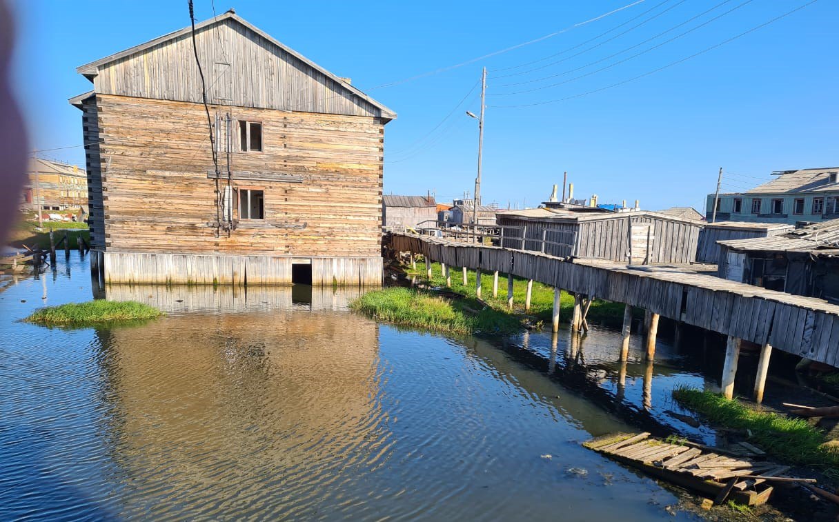 Жители говорят, что в Нижнеянске нет канализации, и все фекалии уходят в выгребные ямы под домами. Вероятно, это влияет на разрушение жилья.