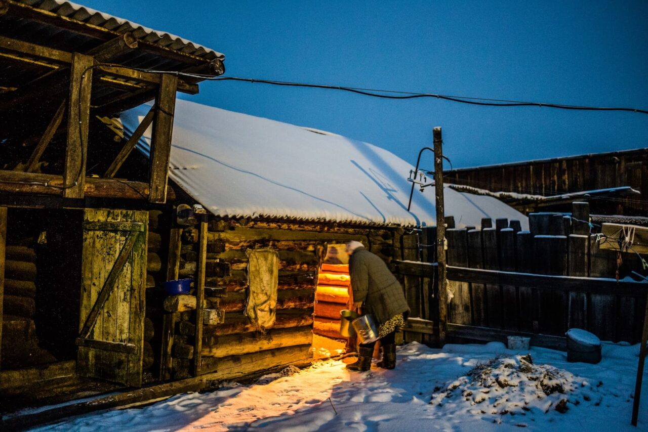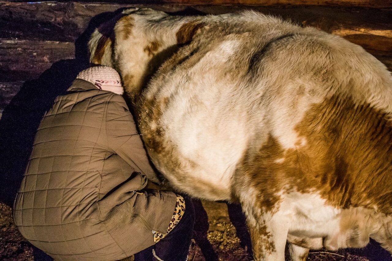Перед тем, как уехать, Октябрина продала коров и телят, отдала кур. Не надеялась, что муж Николай без нее сможет ухаживать за животными. Вместе они ведут хозяйство, но давно не живут как муж и жена. «Когда Коля уходит в запой, забывает обо всем. Он пьет 30 лет. Раньше я пыталась бороться. Сейчас смирилась, перестала обижаться. Я пообещала детям, что не брошу его, пронесу свой крест до конца. Они сказали мне: «Мама, отец умрет без тебя!», — говорит Октябрина.