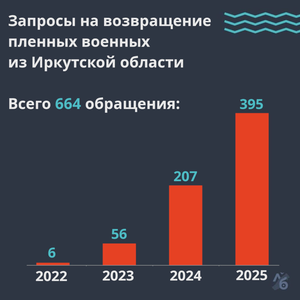 Третья, также массовая проблема — возвращение домой попавших в плен солдат из Иркутской области. С начала войны число таких обращений выросло в 66 раз: с 6 до 395 в год. Всего в плену побывало, по данным Семеновой, 664 жителя региона, часть из которых удалось вернуть при ее непосредственном участии.